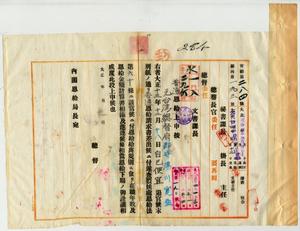 〔元府郡守〕湯川寬猛普通恩給證書下賜