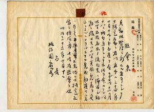元雇有川庄介退職ノ理由ニ關シ桃仔園廳長ヘ回答ノ件