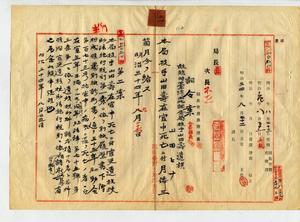 故〔臨時台灣土地調查局〕技手山田壽遺族〔山田ヒナ〕ヘ死亡賜金及死者ノ履歷書下付ノ件