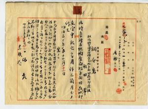 故〔臨時台灣土地調查局〕技手角田莊次郎遺族〔角田常〕ヘ死亡賜金及死者ノ履歷書下付ノ件