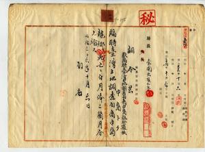 故〔臨時台灣土地調查局〕技手中島龍鄉遺族〔中島トク〕ヘ死亡賜金給與ノ件