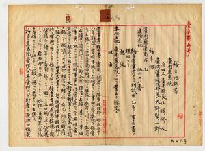 臺南廳長〔山形修人〕對陸軍經理部長〔大野賢一郎〕調書(臺南慈惠院)