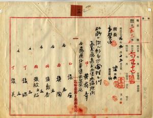 〔嘉義廳〕嘉義西堡黃有章對張屋外六人和解ノ件