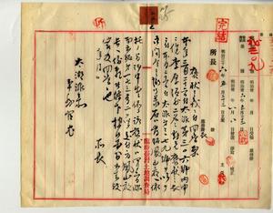 太湖派出所事務官ヘ李厚源外二名ニ係ル褒狀鳳山廳長交付方依賴ニ係ル回答ノ件