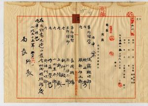 屬後藤政次郎、屬杉山秀、屬服部伊三郎、屬長岡梧樓ラ事務監督督屬南川與太郎、同事務執行政一、同上野德藏、同山田米太郎、同佐藤榮也、同野津門次郎ヲ主幹補助ニ官令方內申