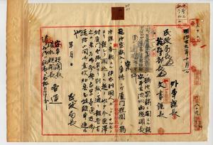 廈門稅關吏鴉片密輸ニ關スル談話ノ報告ヲ安平及淡水兩稅關長ニ通知ノ件六ノ九ニモアリ