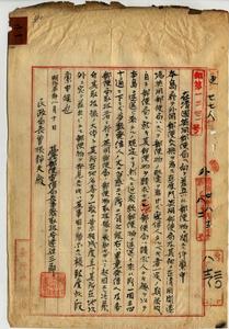 本島差立清國宛不能配達郵便物ニ關シ香港郵政部長官ト往復供覽ハ本島ノ狀況ニ應シ便宜ノ方法ニ樣ルヘキ見ニラ其筋ヘ交涉中ノ旨台北局ヘ通牒