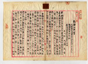 撫墾署主事補大澤茂吉賞賜ニ關スル件、主事補大澤茂吉偉勳ル者ニ付行賞方臺東廳長上申、主事補大澤茂吉偉勳アル者ニ付行賞賜方總理大臣ヘ稟申、大澤主事補死去ノ旨臺東廳長屆、大澤主事補遺族ヘ追賞方內務大臣ヘ稟申、大澤主事補相續人又ハ遺族者ノ住所氏名取調方內務秘書官照會、大澤主事補相續者等取調方臺東廳ヘ照會、大澤主事補ハ單獨戶主ナル旨臺東廳回答、大澤主事補實艾生存ノ旨臺東廳回答、大澤主事補實艾生存ノ旨內務秘書官ヘ回答、大澤主事補ハ單獨戶主ナルニ付賜金ノ限無之旨內務秘書官回答、大澤主事補ハ單獨戶主ナルニ付賜金ノ限無之旨臺東廳ヘ通知、故大澤主事補ヘ賞賜ノ儀ハ遺族ナリ資格消滅ノ旨陸軍省人事課長通知