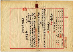 赤石源次郎ニ係ル勳章年金仕拂通知書ノ儀ニ付問答ノ件(頂雙溪弁務署長)