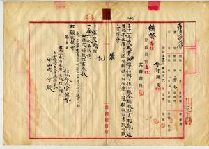 明治三十一年度恩賞諸祿仕拂ニ係ル現金領收證書ニ對スル領收證書送付ノ件(臺北本金庫)