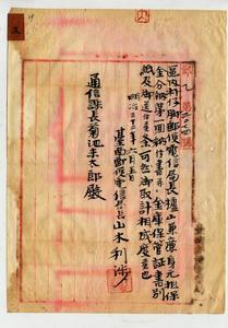 樸仔腳、塗葛堀、金包里、葫蘆墩、頂雙溪、北港、牛馬頭、東勢角、桃仔園、頭圍、大嵙崁、蘇澳各局長身元保證金送付