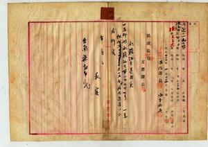 支那形船金和發船籍證書下付