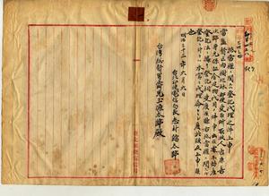 樹圯林郵便受取所取扱人吉廉善次郎身元保護金代用建物登記ヲ登記官署ニ囑託スルエトヲ臺北局長ヘ委任ス