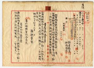 三等局長大津一郎、細江勝治、佐伯磬三郎、宮下剛吉、田崎一貫、近藤太一郎、有川宜一、藤村信亮擔保金假納付濟証交付