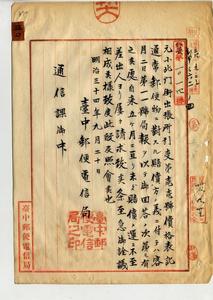 小北門出張所引受價格表記郵便物東京局ト本鄉支局間傳送中亡失ニ付損害賠償決定