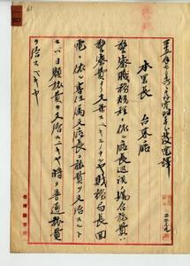 廳長巡視ノ場合及專任警部又ハ警部兼任者出張旅費ニ付台東廳長ヘ回答