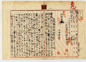 澎湖廳石川慶三外十名伺出ニ對スル官幣大社臺灣神社遙拜所建立ニ關シ澎湖廳長ヘ處理スル樣通知ノ件