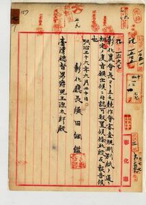 彰化廳彰化農會立毛競作會審查規則認可ノ件同廳長報告