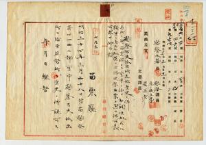 苗栗廳長稟申ニ係ル大湖支廳洗水坑及ヒ南洗水坑內派出所ヲ隘勇監督所ニ變更ノ件認可指令ノ件(指令第七九六號)