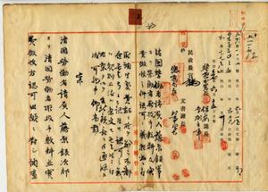 清國勞働者請負人藤原銀次郎勞動者取扱手數料及ヒ實費徵收ノ件ニ付臺北廳ヘ通達ノ件