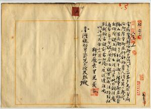 新竹廳新竹街元關帝廟后街度量衡器販賣人清水英三郎代檜山甚兵衛ヨリ度量衡器販賣出張所設立願返戾及ヒ同廳中港街陳汝厚度量衡器販賣特許及衡器一部修覆認可(指令第一三五號、特許第八五號)