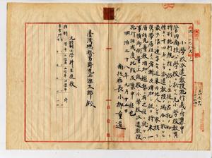 小學校派遣教授施行ノ儀南投廳長稟申既配付豫算ニテ施行スヘキ旨通牒ノ件