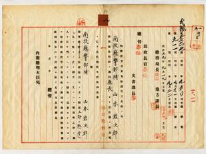 南投廳警部補山本岩次郎勤務演習召集免除認可通知ノ件