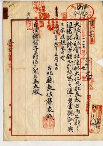 大阪商船會社大仁丸船長太田丙子郎就職及退職認證報告ノ件(臺北廳)