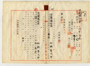 〔宜蘭廳巡查〕加納常太郎勤務演習召集免除具狀認可及通知ノ件(宮崎聯隊司令部外二ヶ所)