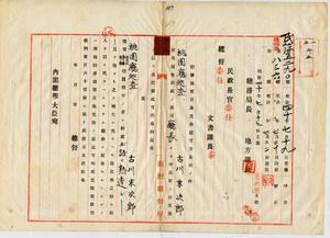 〔桃園廳巡查〕古川末次郎勤務演習召集免除具狀及認可通知ノ件(福岡聯隊區司令部外二ヶ所)