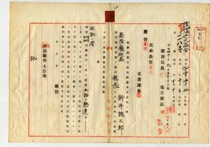 〔基隆廳巡查〕新井詫三郎勤務演習召集免除具狀認可通知ノ件(本鄉聯隊區司令部外二ヶ所)