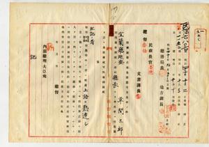〔宜蘭廳巡查〕草間三郎勤務演習召集免除具狀認可通知ノ件(麻布聯隊區司令部外二ヶ所)
