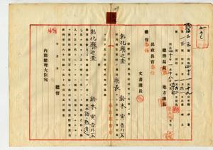 〔彰化廳巡查〕鈴木寅吉外一名勤務演習召集免除具狀及認可通知ノ件(仙臺聯隊區司令部外三ヶ所)