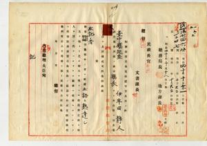 〔台中廳巡查〕伊牟田靜人勤務演習召集免除具狀及認可通知ノ件(高瀨聯隊區司令部外二ヶ所)