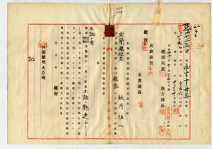 〔宜蘭廳巡查〕秋月佐一勤務演習召集免除具狀及認可通知ノ件(德島聯隊區司令部外二ヶ所)