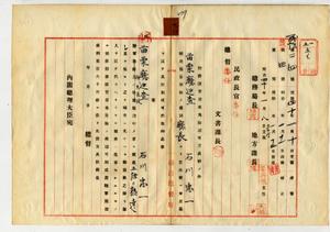 〔苗栗廳巡查〕石川忠一勤務演習召集免除具狀及認可通知ノ件(濱田聯隊區司令部外二ヶ所)