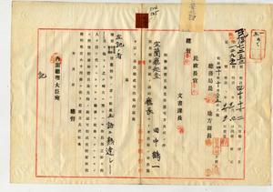 〔宜蘭廳巡查〕田中鶴一勤務演習召集免除具狀及認可通知ノ件(岡山聯隊區司令部外二ヶ所)