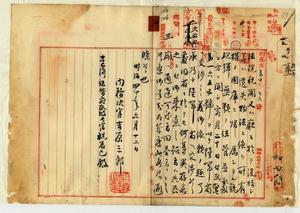 沒收並遺失物法ニ依リ所有權ノ國庫ニ皈屬シタル銃砲火藥ノ義ニ付陸軍省ヘ交涉方內務次官ヘ依賴