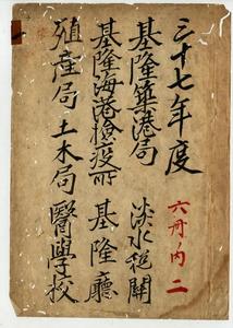 明治三十七年度官有財產異動(新竹廳、基隆築港局、苗栗廳、臺中廳、彰化廳、南投廳、淡水稅關、基隆海港檢疫所、基隆廳、殖產局、土木局、醫學校、臺北廳、基隆廳、深坑廳、桃園廳)