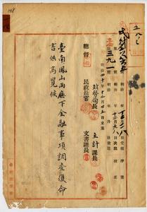 信用組合興業公司營業振ニ付台南廳ニ通達並台南鳳山二廳內金融事項調查復命ノ件(屬木崎莊一郎)