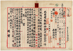 四十一年告示第百一號別冊台灣發川石山經過外國電報料金表改正ノ件(遞信大臣、告示第百三十二號)