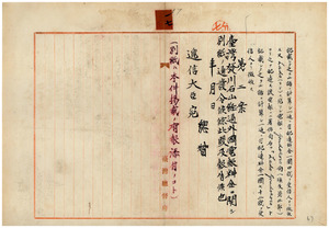 訓令第二百十六號、訓令第二百十七號及告示第百五十九號ヲ以大肚電信取扱所ニ於テ電報取扱事項ヲ定メ三十六年訓令第百五十七號中改正等ノ件
