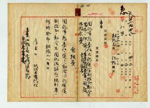 關稅事務委任及稅關官制改正ノ敕令等發布ノ件ニ關シ臺灣課長ヘ電報問合ノ件回答