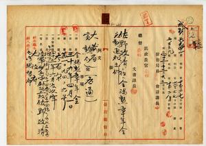 佐野政清金雞勳章年金主管異動通知ノ件(大藏省外一局)