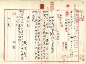 田中央停車場ニ於テ公眾電報取扱開始ノ件(訓令第四十八、第四十九號、告示第四十八號)