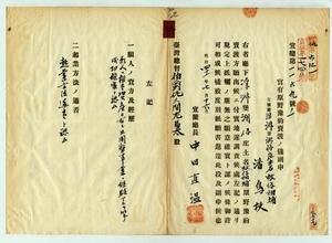 潘烏枝開墾成功地賣渡許可ノ件(指令第三二一三號)