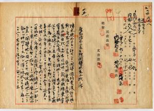 陳木與外三名ヘ許可ノ開墾差止願書却下方通牒(新竹廳)