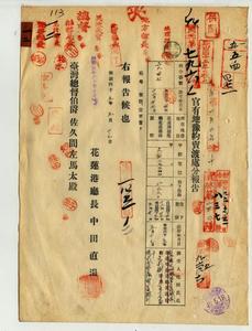 殖產局、財務局、株式會社臺灣貯蓄銀行、花蓮港廳、地方部、內務局、