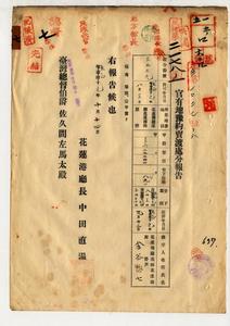 殖產局、財務局、花蓮港廳、地方部、