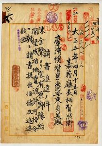 豫約開墾地成功賣渡願許可(陳金聲)